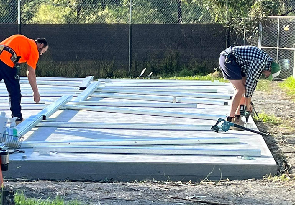 Storms and wild winds continue to hamper progress. We are so excited to see our new shed go up. It’s been a long wait under make-shift tents with limited facilities and in awful weather conditions.