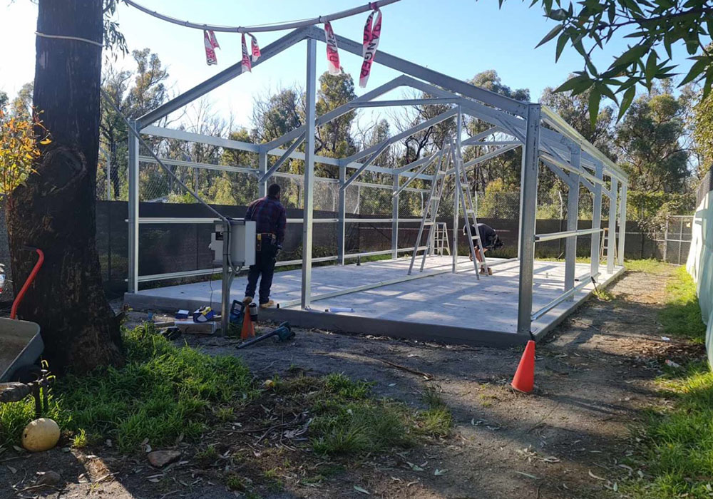 Following the December 2019 wildfires which destroyed our building, trees and a large amount of the property fencing and enclosures, we have been waiting for the thumbs up from National Trust and their insurers and the start of our shed rebuild.