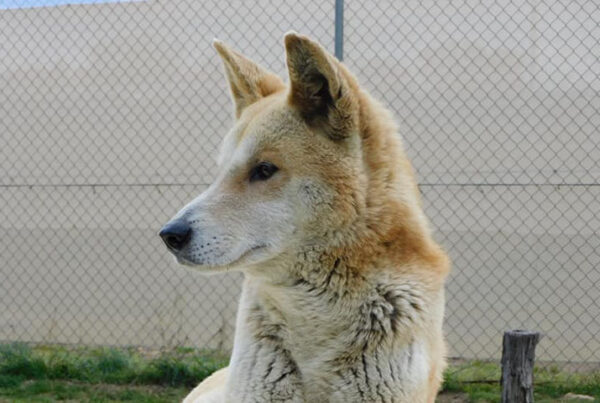 Tyipa loves to dig holes and hides in the enclosure, he’s wonderfully camouflaged after jumping in his cool pool and immediately rolling around in the mud. He’s one of the few dingoes who doesn’t mind a bath and groom. Tyipa has a wonderful temperament, similar to a big, cuddly Labrador and eats like one too!